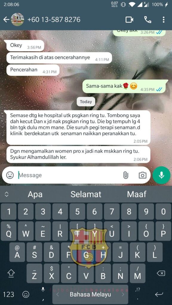 Akak, mula-mula sekali saya nak ucapkan Ribuan terima kasih kerana sentiasa support saya dan berikhtiar dengan Women Pro.