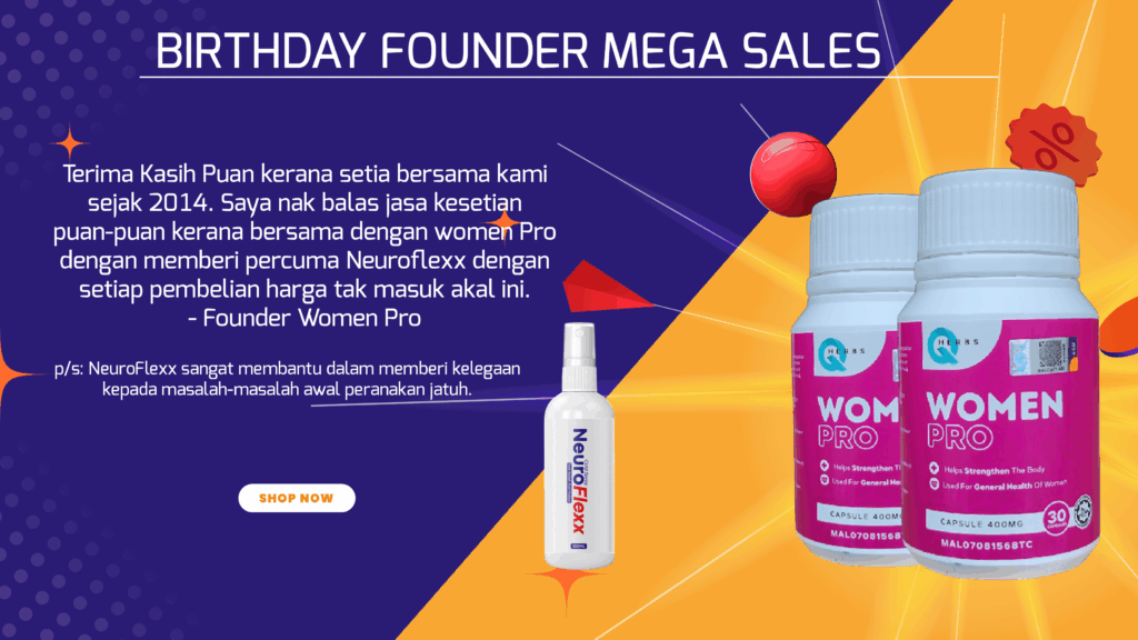 walaubagaimanapun, HQ menghargai pengguna setia. Dan berita baik, sempena bulan kelahiran Founder women pro. Dia telah maklumkan kepada kami untuk Lelong Stok women Pro sedia ada ini. Tak cukup dengan tu, HQ akan bagi secara percuma tester Neuroflexx (untuk kelegaan gejala awal sebelum terjadi tombong)
