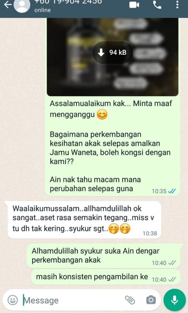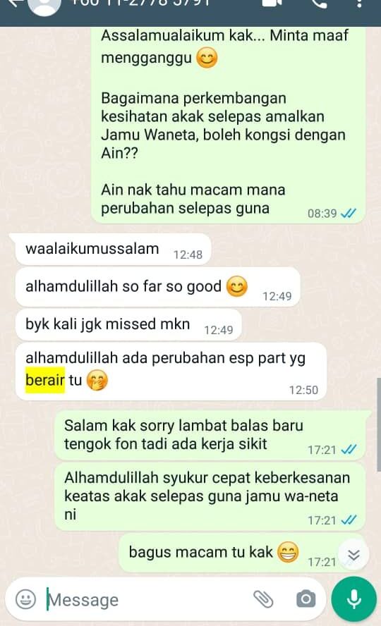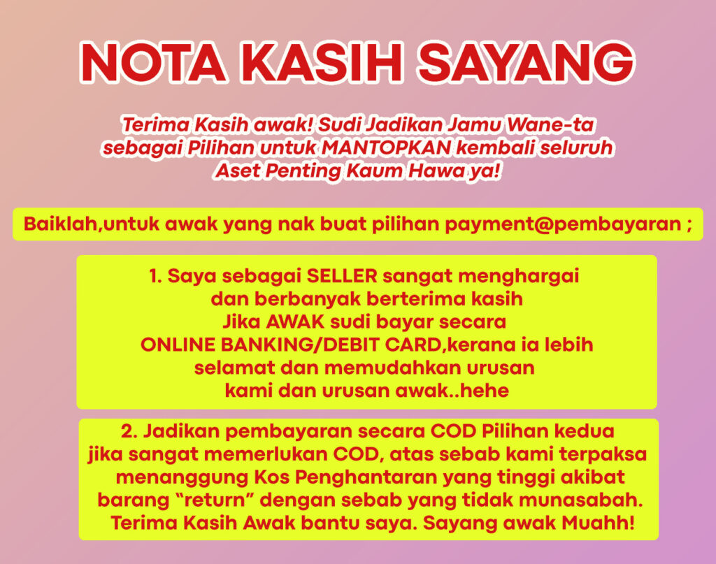 Selain Masalah Kering, Jamu Wane-ta juga dapat membantu Masalah Akak seperti